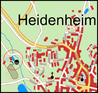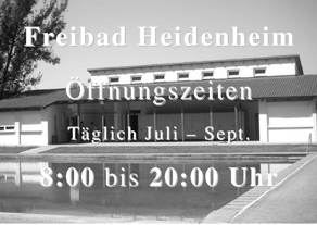 Wegbeschreibung: Naturfreibad direkt am Sportplatz Heidenheim Kinderbecken - Kiosk - Liegewiese - Beach-Volleyball - Tischtennis - Eintritt FREI!