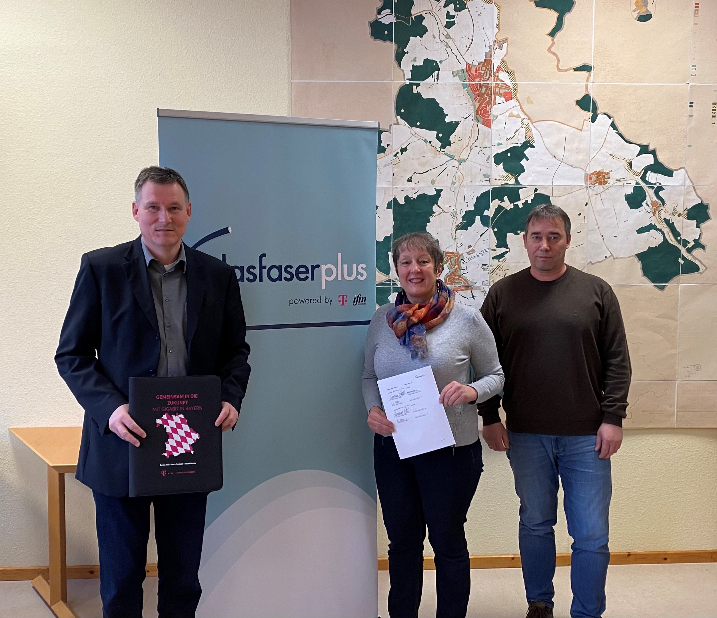 von links nach rechts: Markus Sand (Telekom), 1. Bgm. Susanne Feller (Markt Heidenheim), Robert Dollhopf (Telekom)